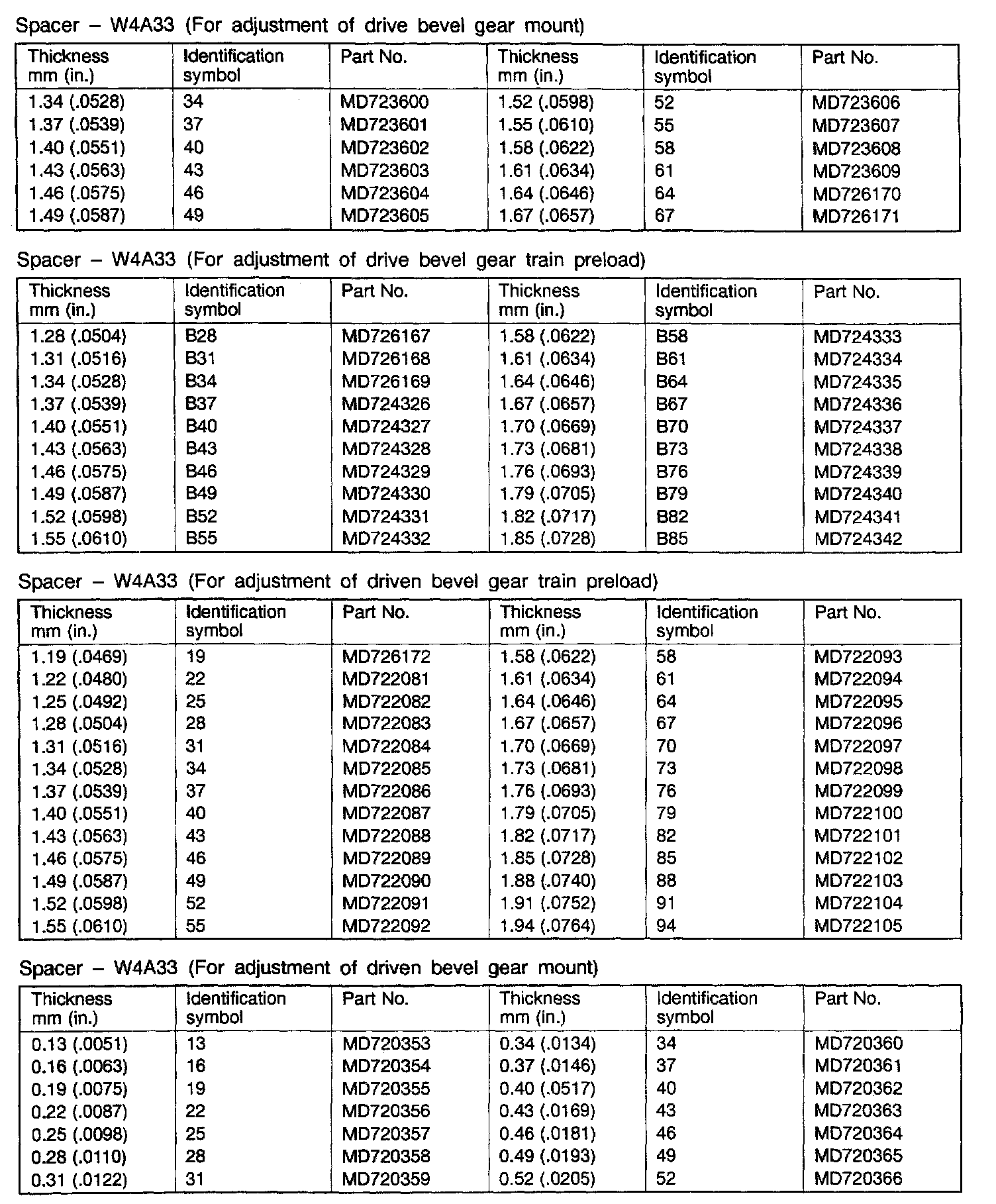 W4A33 4-spd A/T, Drive Bevel Gear Mount & Train Preload: