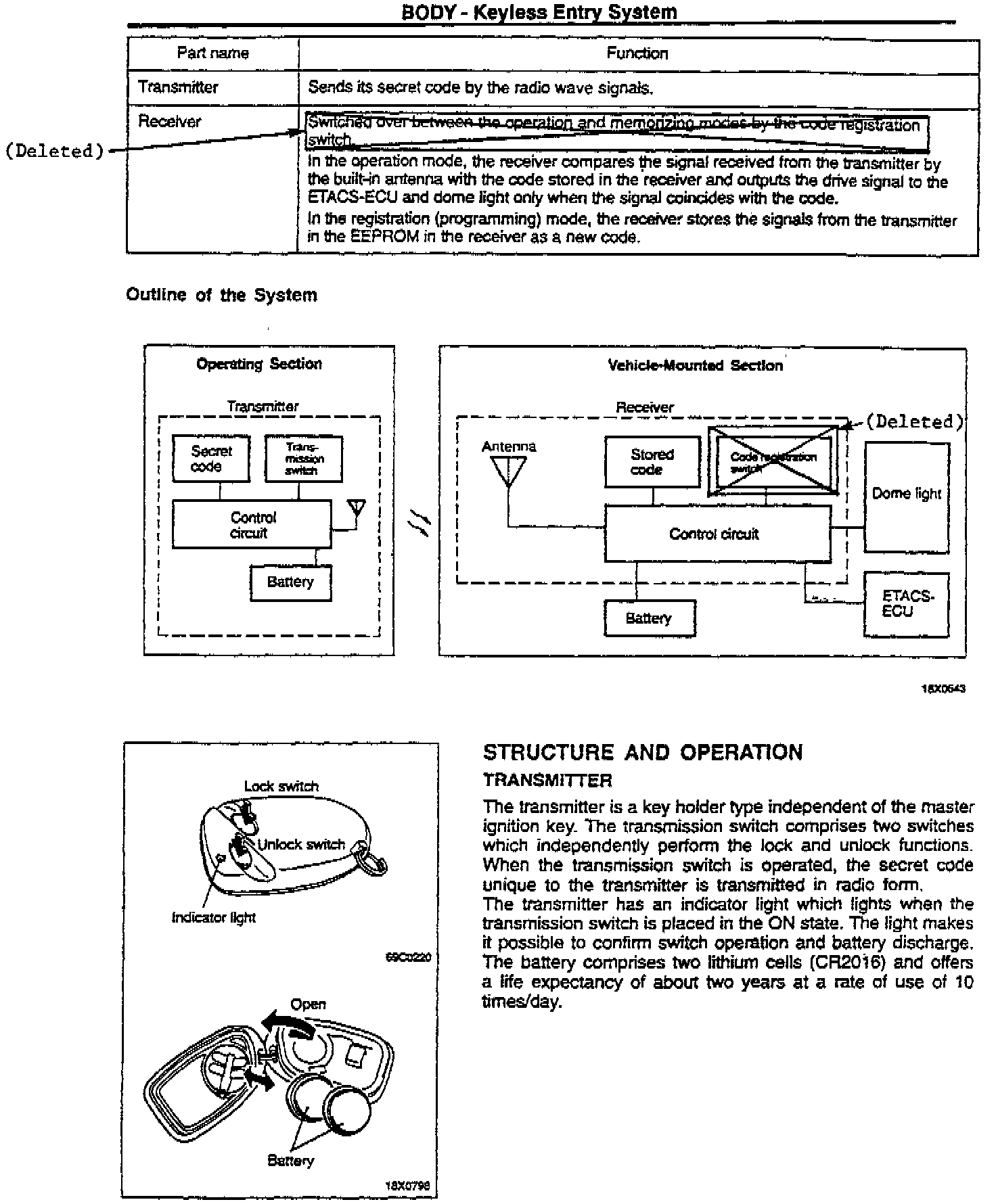This bulletin is issued to correct errors in the description of the Remote Keyless Entry System in the 1995 Eclipse Service Manual. It applies only to the factory-installed TRW system.