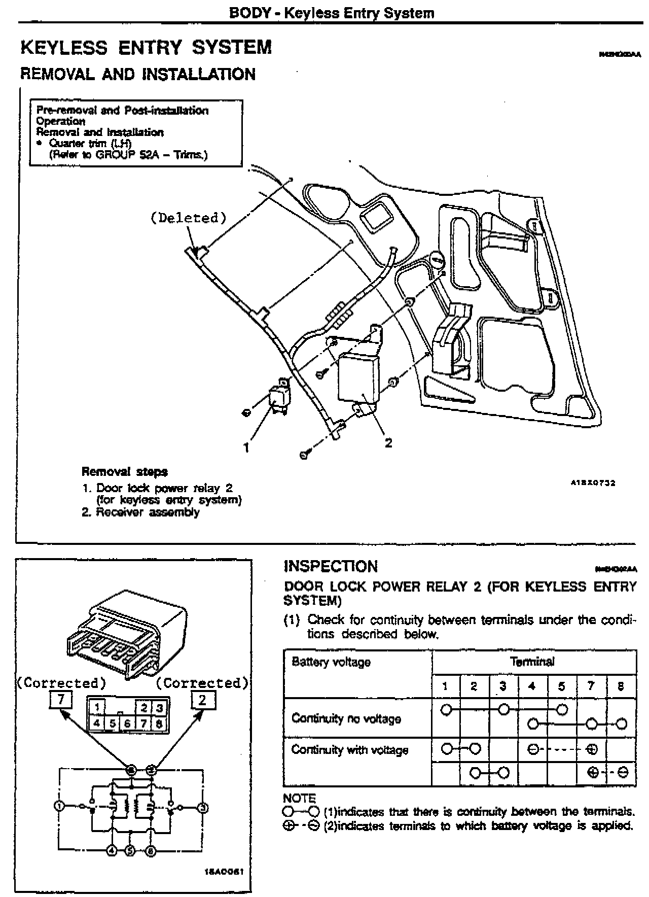 KEYLESS ENTRY SYSTEM - SERVICE MANUAL REVISION