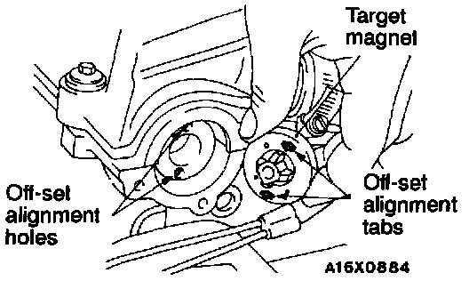 To install the target magnet, align the off-set tabs of the magnet with the off-set holes of the camshaft.
