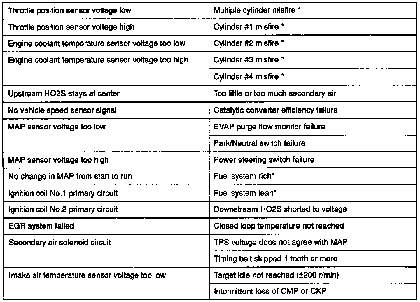 However, for items marked with a"*" the check engine/malfunction indicator lamp illuminates on the first detection of the malfunction.