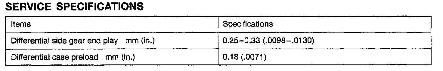 F5MC1 5-spd M/T, Differential Standard Values: