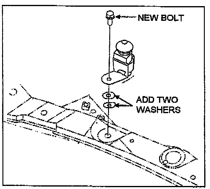 3. Install two washers between the hood switch bracket and vehicle body as shown. Use the washers listed in the PARTS INFORMATION section of this bulletin.