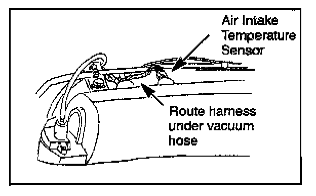 6. Route the air intake temperature sensor harness under the vacuum hose as shown.