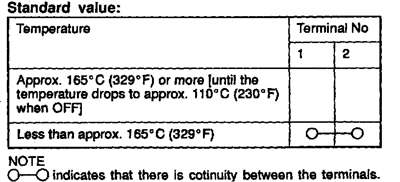 (2) Use a ohmmeter to confirm the continuity condition when the engine oil has become heated.