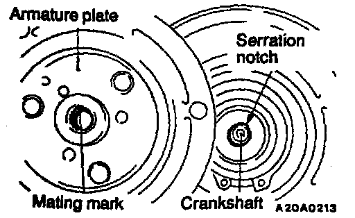 Align the mating mark of the crankshaft spline and the mating mark of the armature plate, and then fit them together.