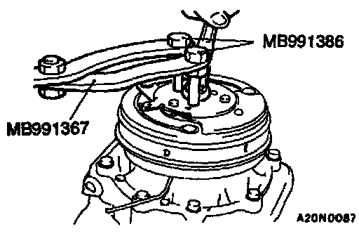 When installing the clutch coil to the NC compressor body, install so that the pin hole of the A/C compressor body and the clutch coil projection are aligned.