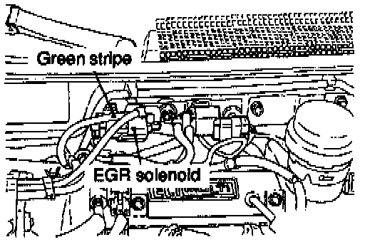 1. Disconnect the vacuum hose (green stripe) from the EGR solenoid, and then connect a hand vacuum pump via the three-way terminal.