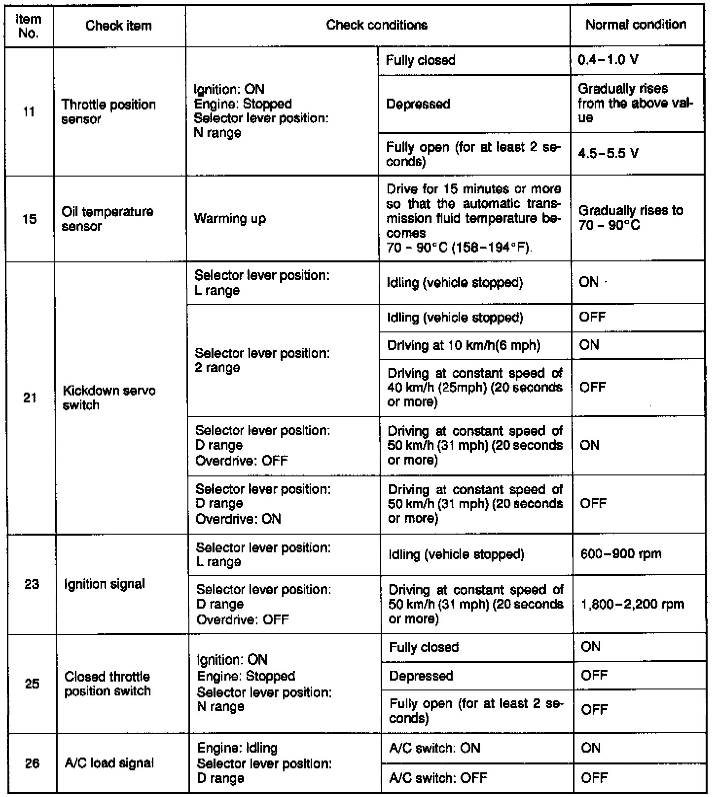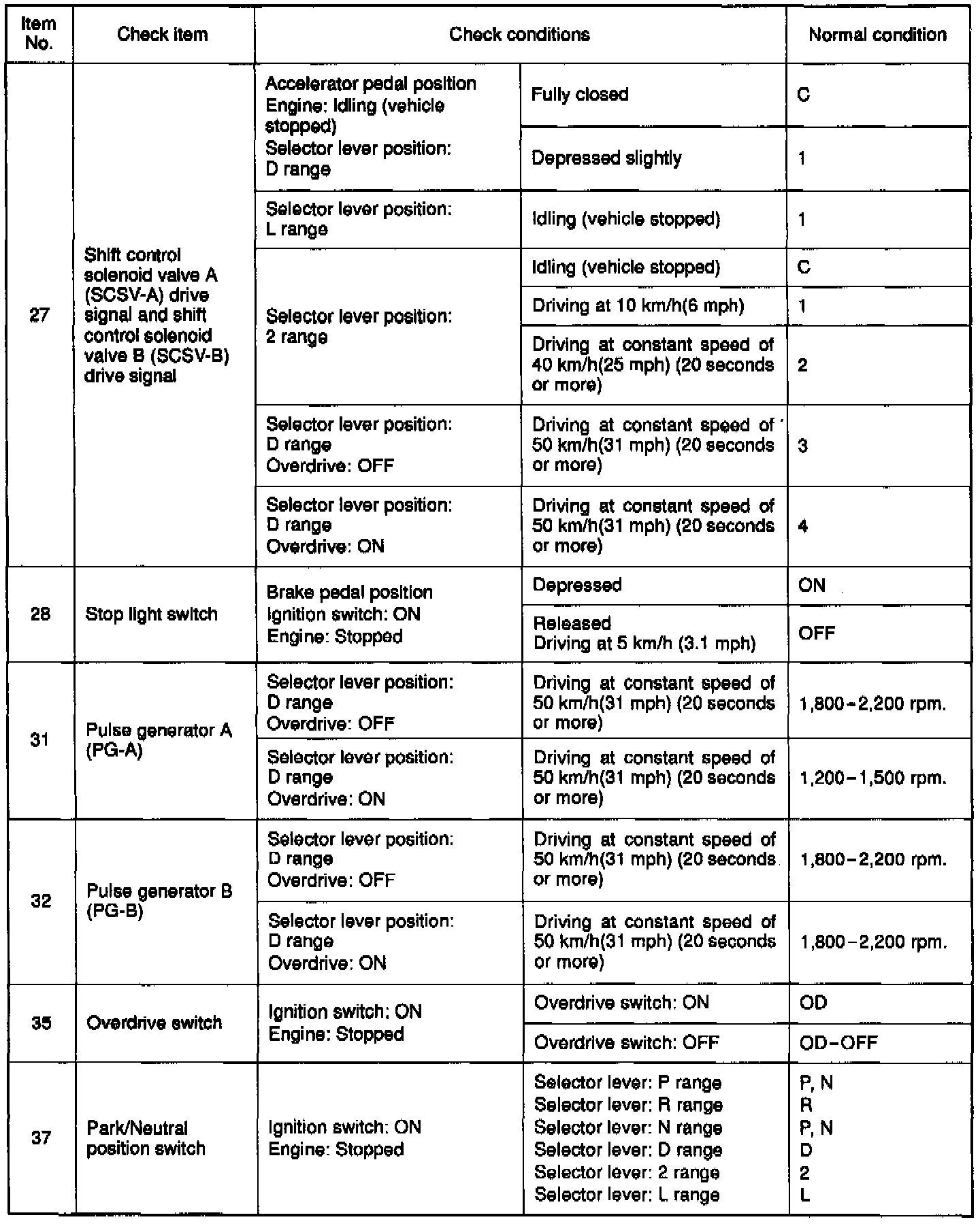 Inspection Using Scan Tool, Road Test and Data List