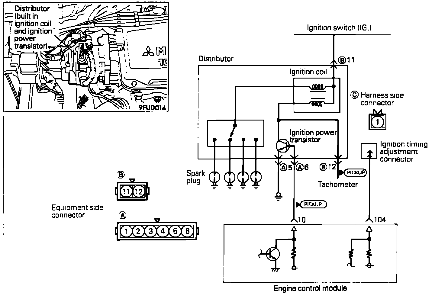 The engine control module (ECM) controls ignition timing through the power transistor. The power transistor is a switch that allows a very low voltage (from the ECM) to control a larger amount of voltage (negative side of coil). During engine cranking the ignition timing is fixed at 5°BTDC