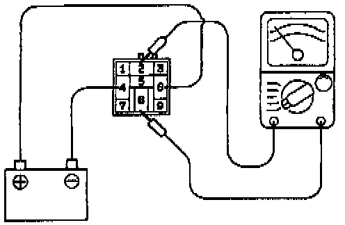 Check the continuity between relay terminal No.2-8 while connecting and disconnecting the jumper lead at the battery (-) terminal.
