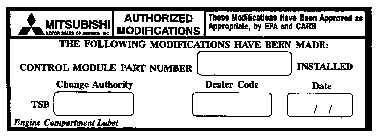 13. Using a ball-point pen, enter the replacement TCU part number, this TSB number (TSB-98-23-003), your dealer code, and the current date on the Engine Compartment Label.