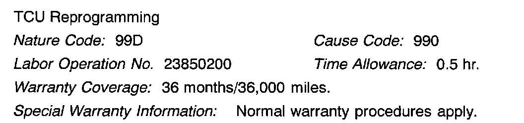 If the TCU has already been reprogrammed for this condition, the displayed current and replacement part numbers will be the same, or the message "BREAK NOT SEEN" will display. If so, do not continue with this procedure.
