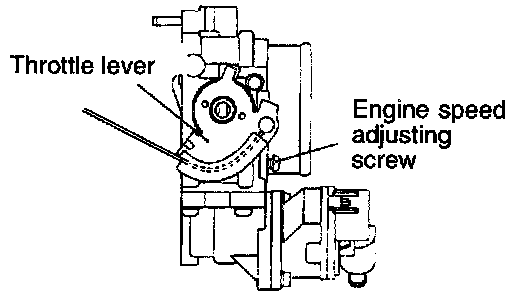 (11) After adjustment, check to see that the end of the engine speed adjusting screw is in contact with the stopper of the throttle lever.