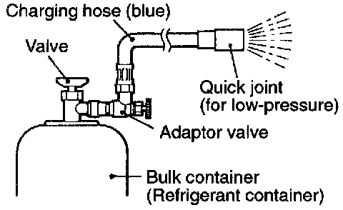 11. After replenishing is completed, turn the handle of the adaptor valve all the way in (valve close) and remove the quick joint.