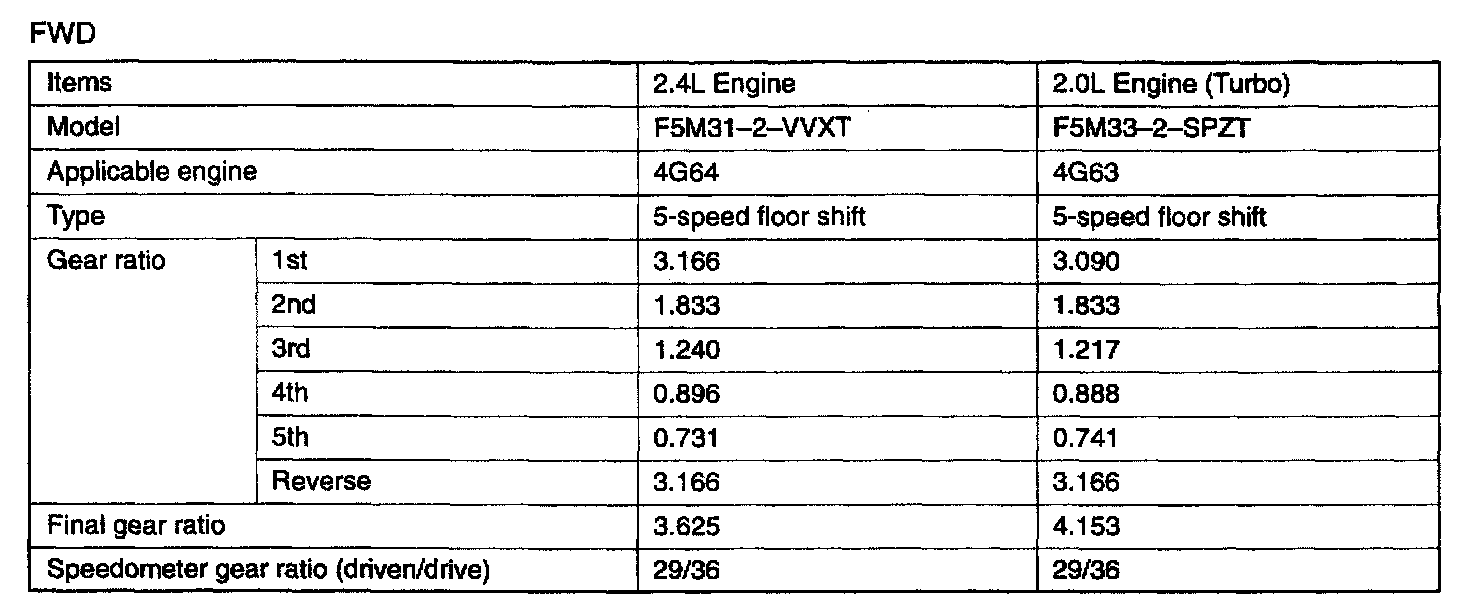 F5M31/F5M33 5-spd M/T, Gear Ratios: