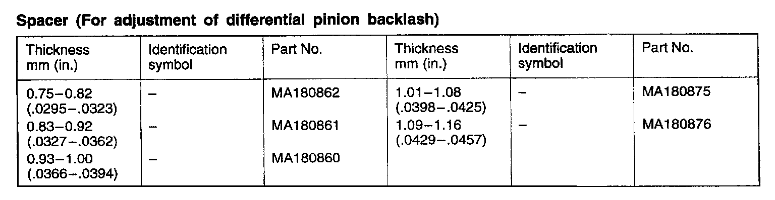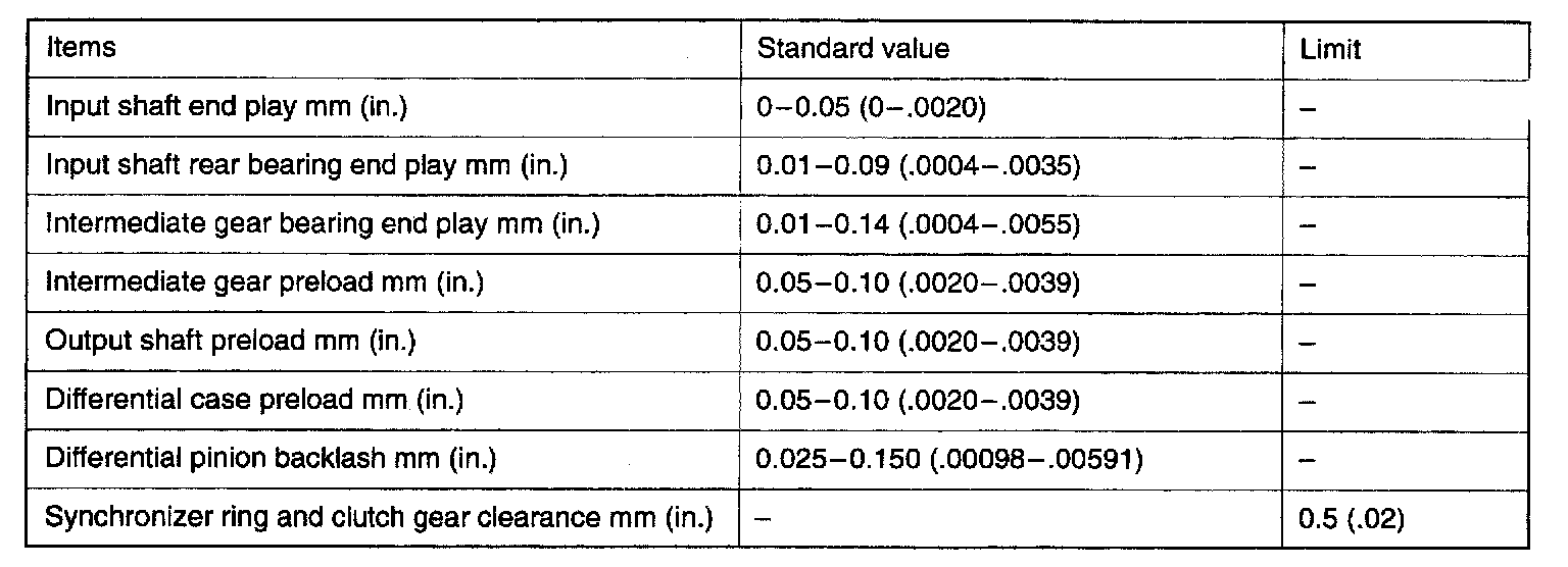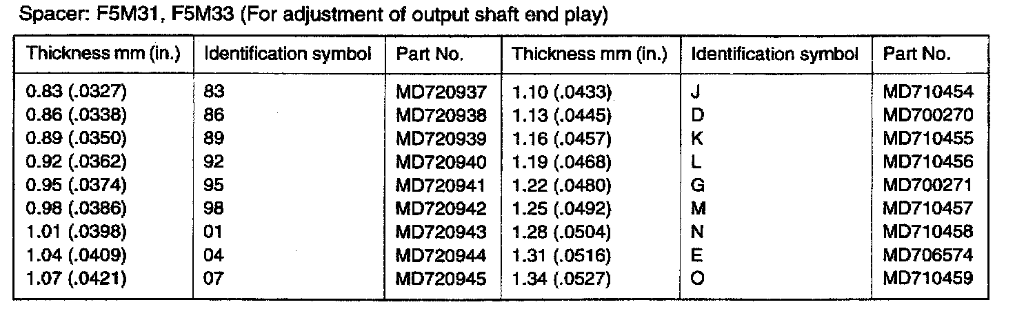 F5M33 5-spd M/T, Differential Pinion Backlash: