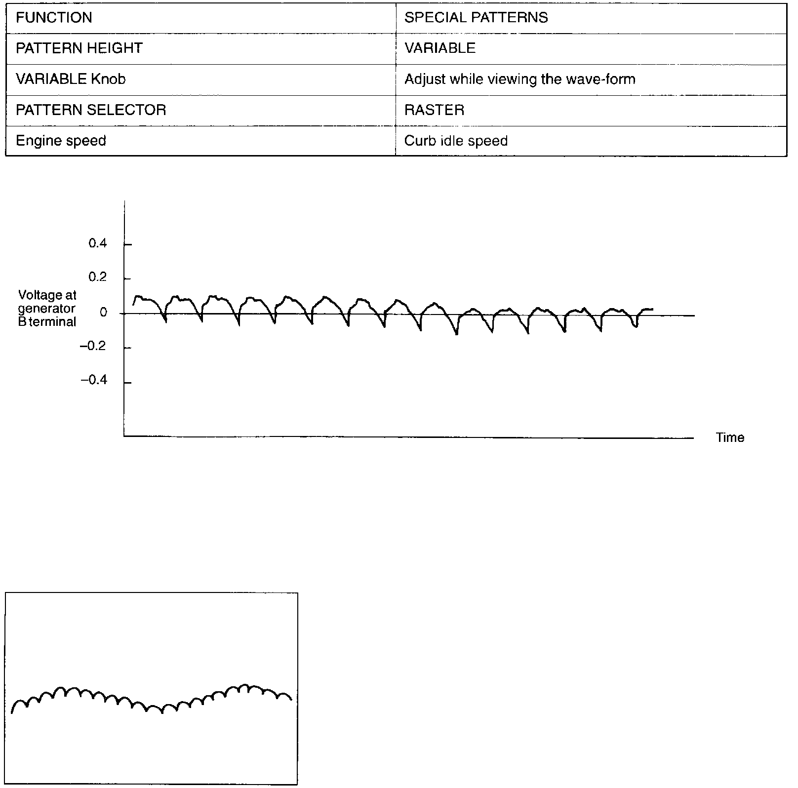NOTE: Furthermore, the voltage wave-form of the generator B terminal can undulate as shown in the small box. This wave-form is produced when the regulator operates according to fluctuations in the generator load (current), and is normal for the generator.