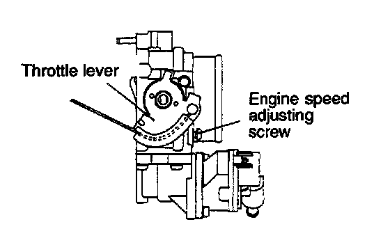 11. After adjustment, check to see that the end of the engine speed adjusting screw is in contact with the stopper of the throttle lever.