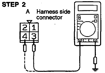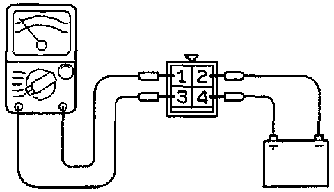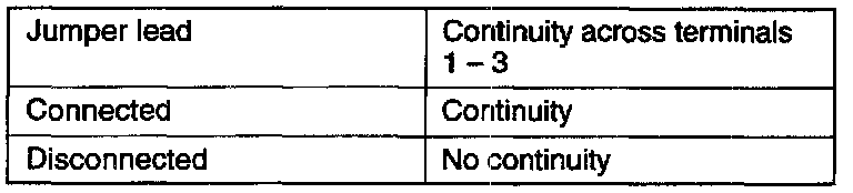 (4) Check the continuity between relay terminals 1 - 3 while connecting and disconnecting the jumper lead at the battery (-) terminal.