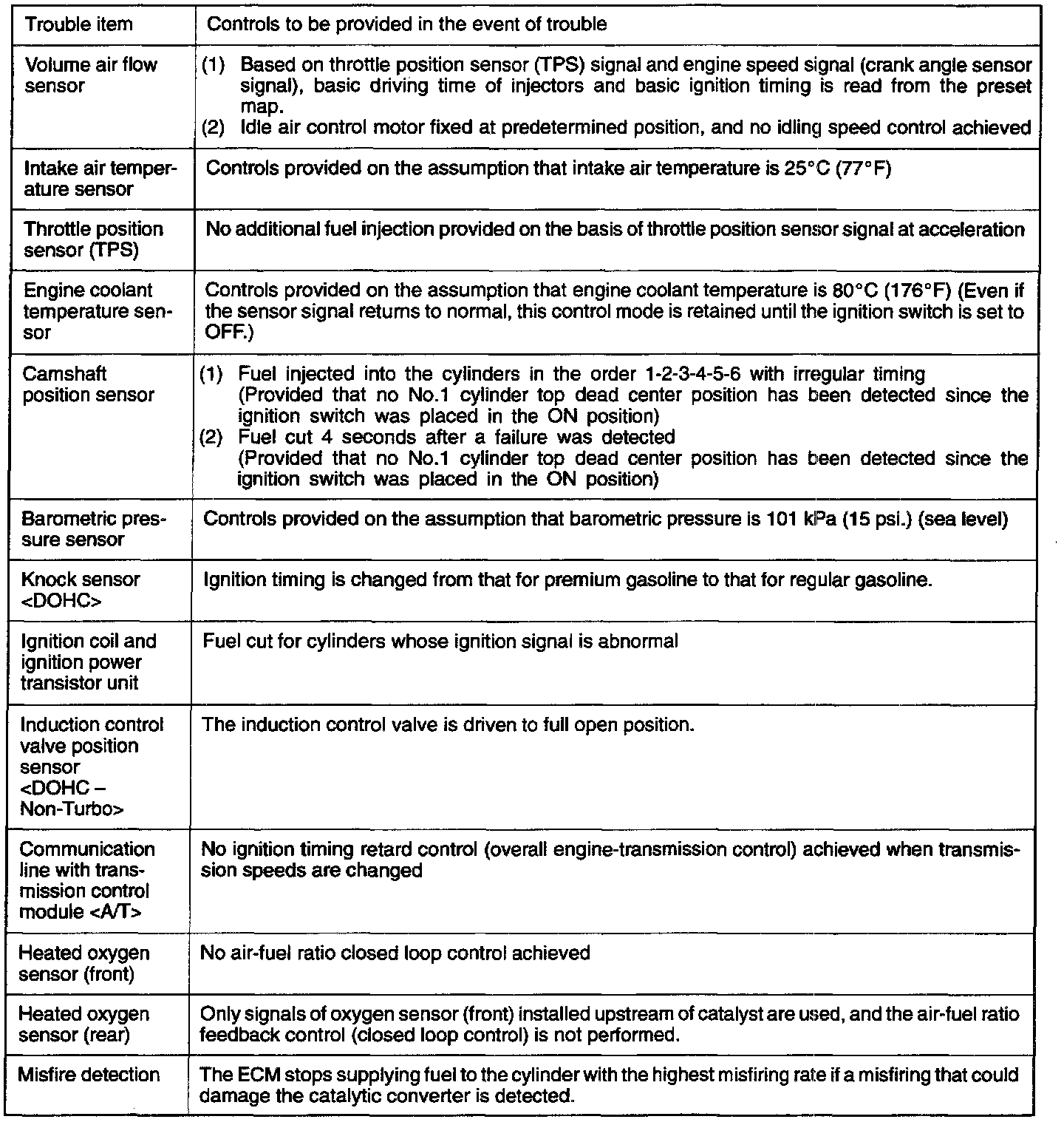 When the failure of a major sensor is detected by the on-board diagnostics, fail preset control logic provides controls to assure safe operation of the vehicle.
