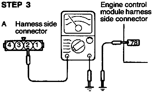 (3) Connect a pointer type ohmmeter between terminal (4) (sensor ground) and terminal (2) (sensor output).