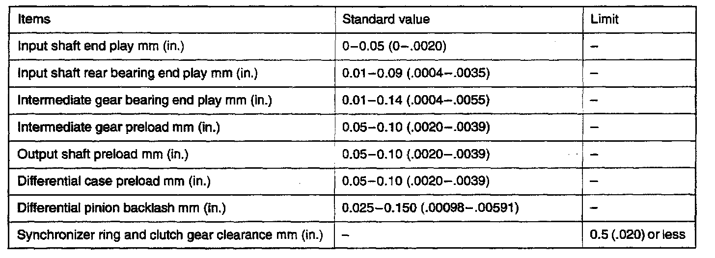 F5M33 5-spd M/T, Input Shaft End Play & Intermediate Bearing End Play: