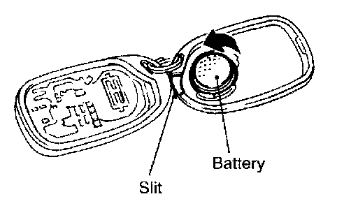 1. Insert a blade-lip screwdriver or the like into the slit shown in the illustration and pry open the cover. Then, remove the battery out of the transmitter.