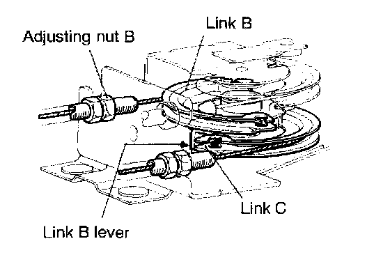 At the position where the lever of intermediate link B is brought into contact with intermediate link C, back off adjusting nut B the specified number of turns.