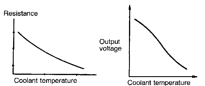 - The engine coolant temperature sensor terminal voltage increases or decreases as the sensor resistance increases or decreases. Therefore, the engine coolant temperature sensor terminal voltage changes with the coolant temperature, decreasing as the temperature rises.