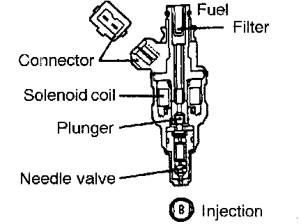 - The injector has a fixed nozzle opening area and the fuel pressure against manifold inside pressure is regulated to a fixed level. Therefore, the volume of fuel injected by the injector is determined by the time during which the needle valve is open, namely, by the time during which the solenoid coil is energized.