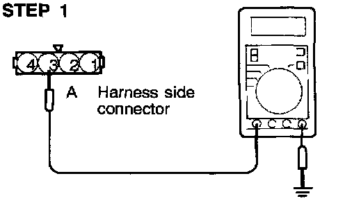 3. Check the continuity across the throttle position sensor connector terminal (4) (Sensor ground) and (3) (Closed throttle position switch).