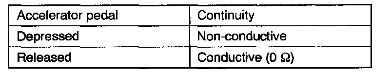 NOTE: If there is no continuity when the accelerator pedal is returned, loosen the throttle-position sensor installation screw; then, after turning all the way in the counterclockwise direction, check again.