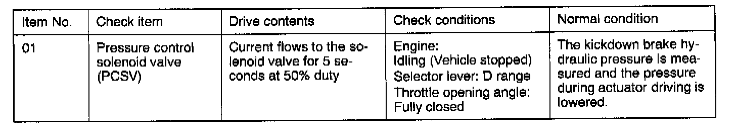 Actuator Test Reference Table