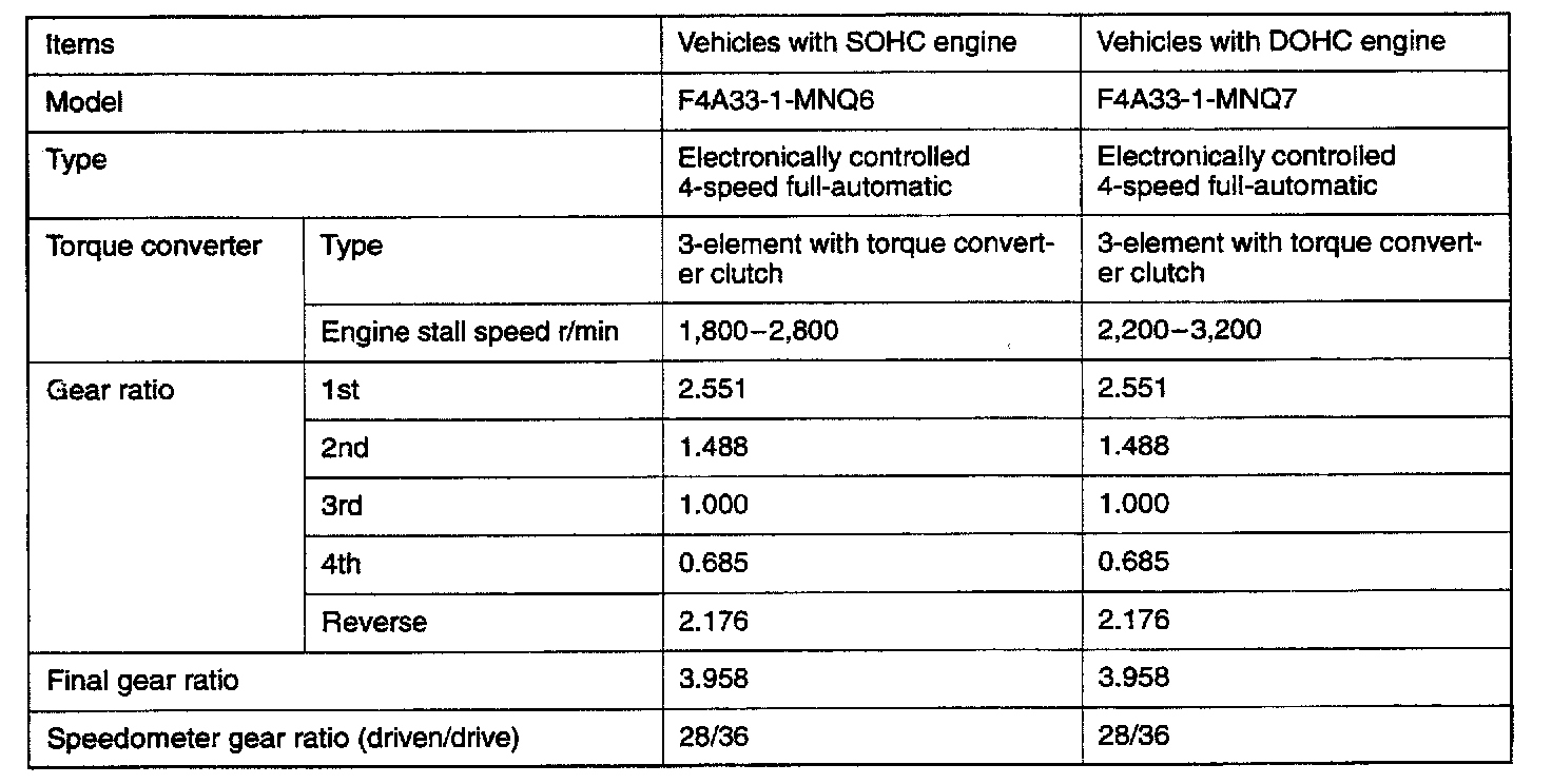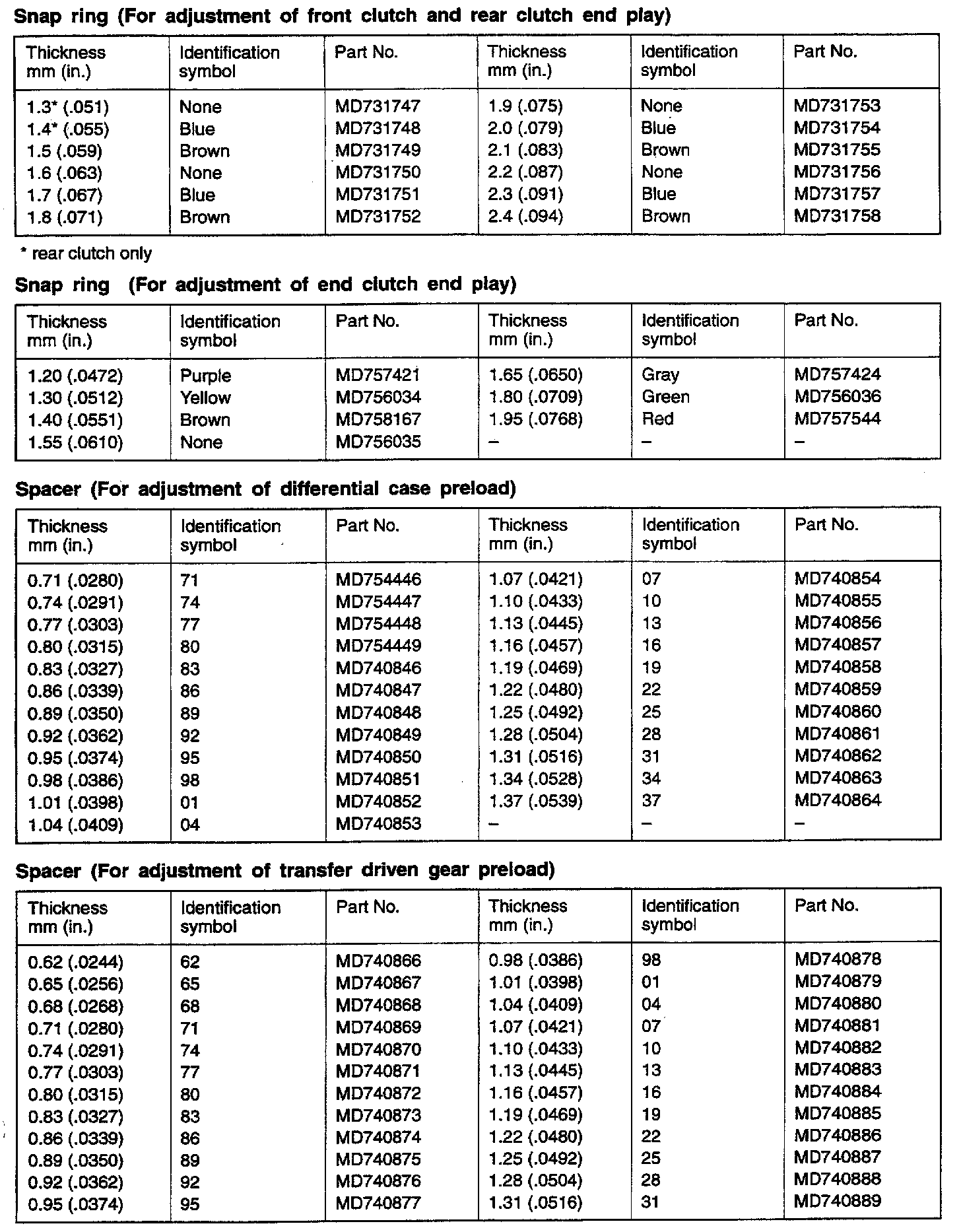 F4A33 4-spd A/T, Clutch End Play & Differential/transfer Gear Preload: