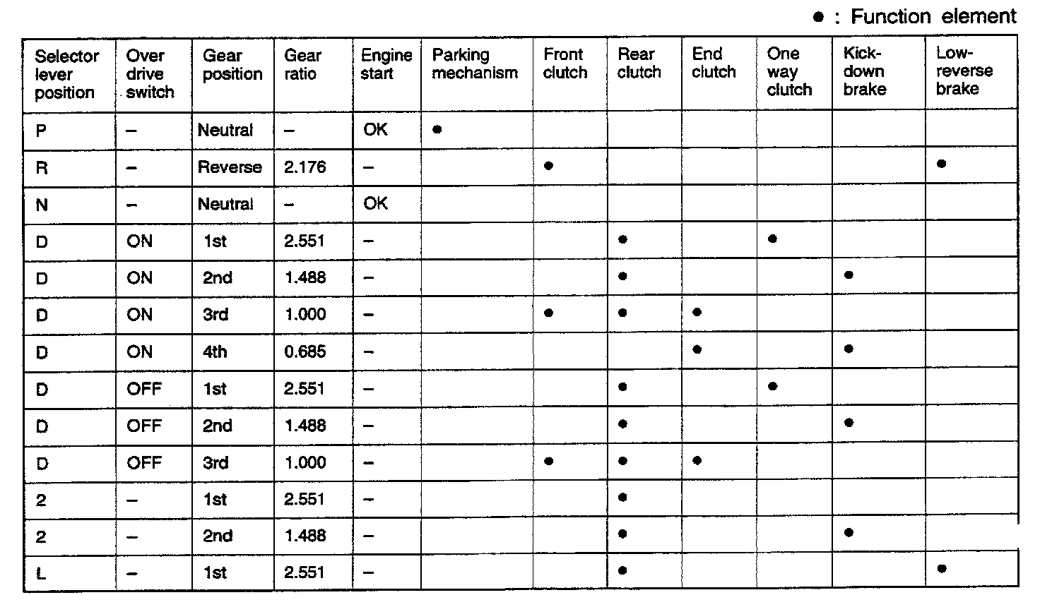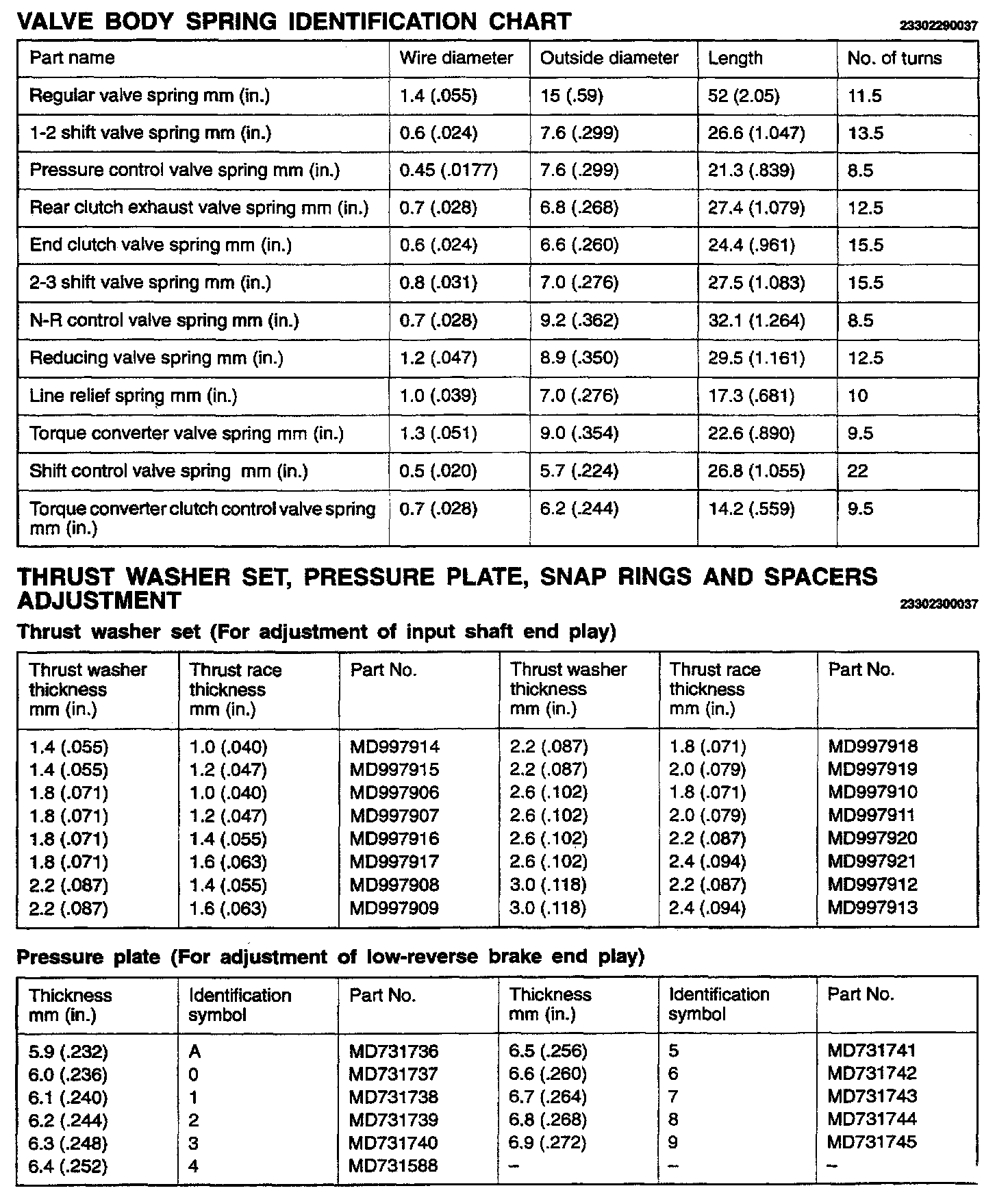 F4A33 4-spd A/T, Valve Body Springs & Input Shaft/Low-Reverse End Play: