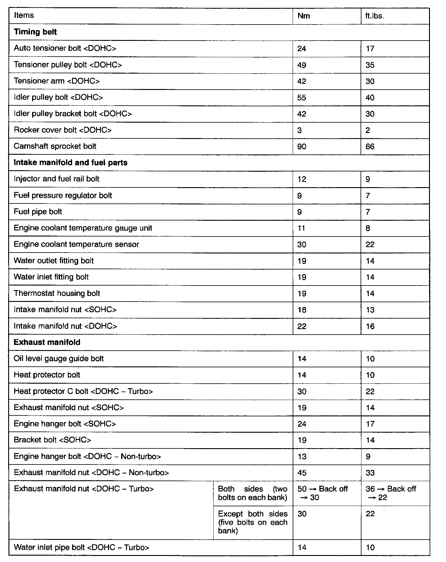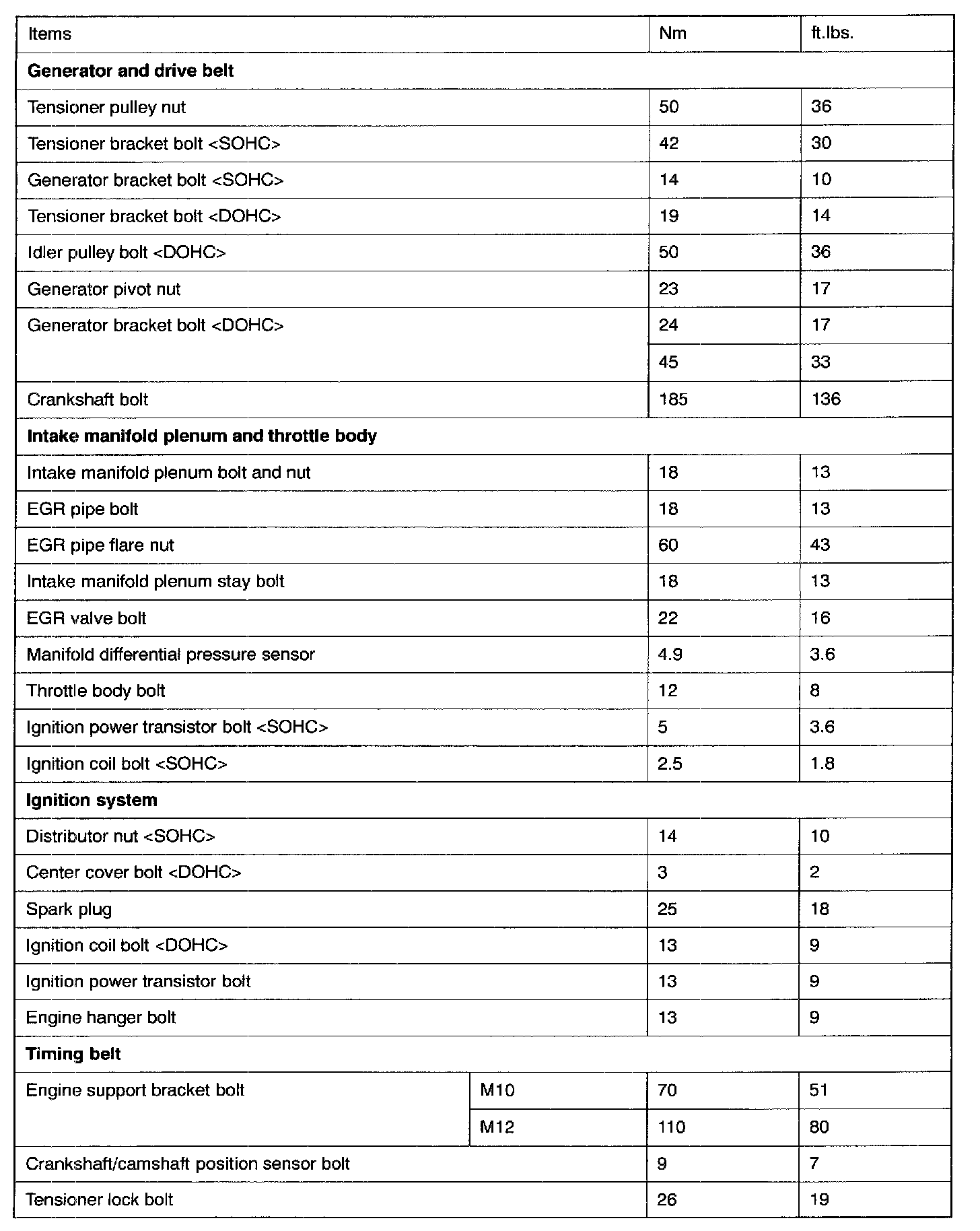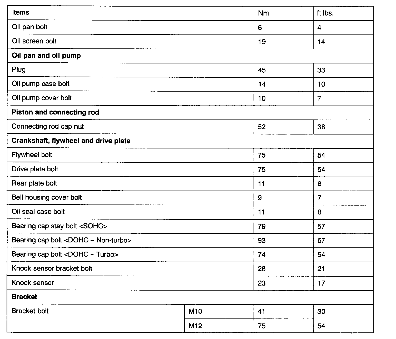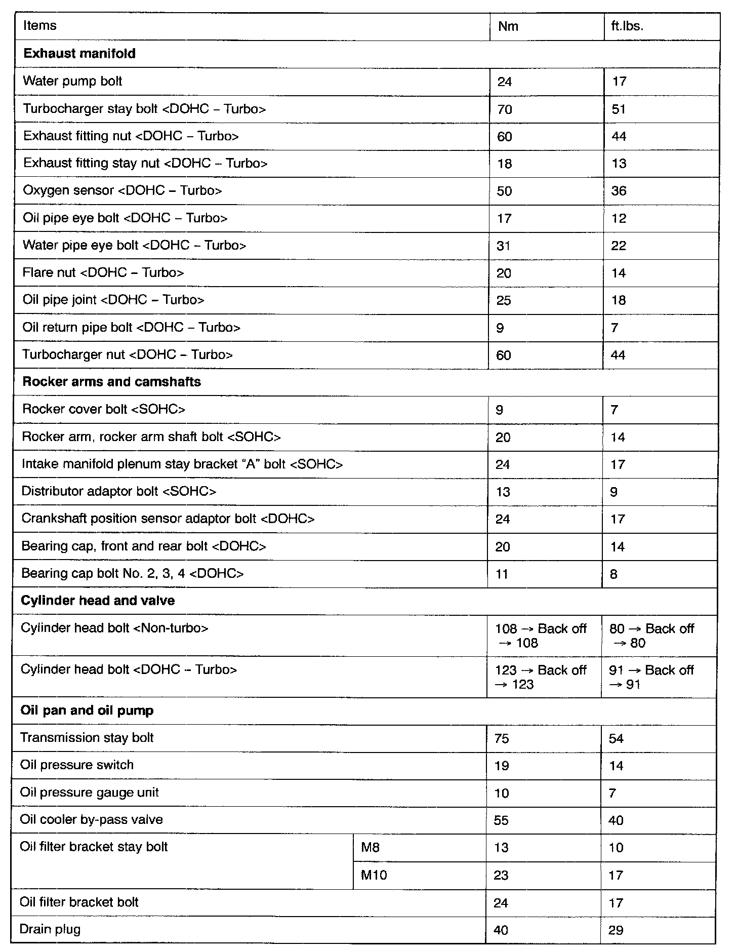 Torque Specifications
