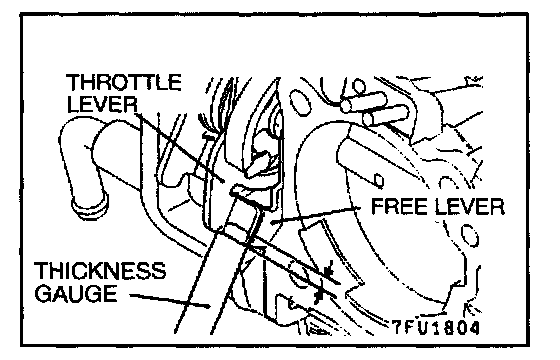 2. Insert a feeler gauge with a thickness of 0.85 mm (0.0334 in.) between the levers shown in the illustration to a depth of no more than 3 mm (0.1181 in.)
