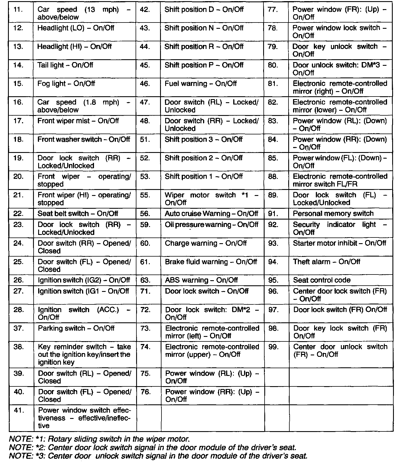 Service Data Reference Chart: