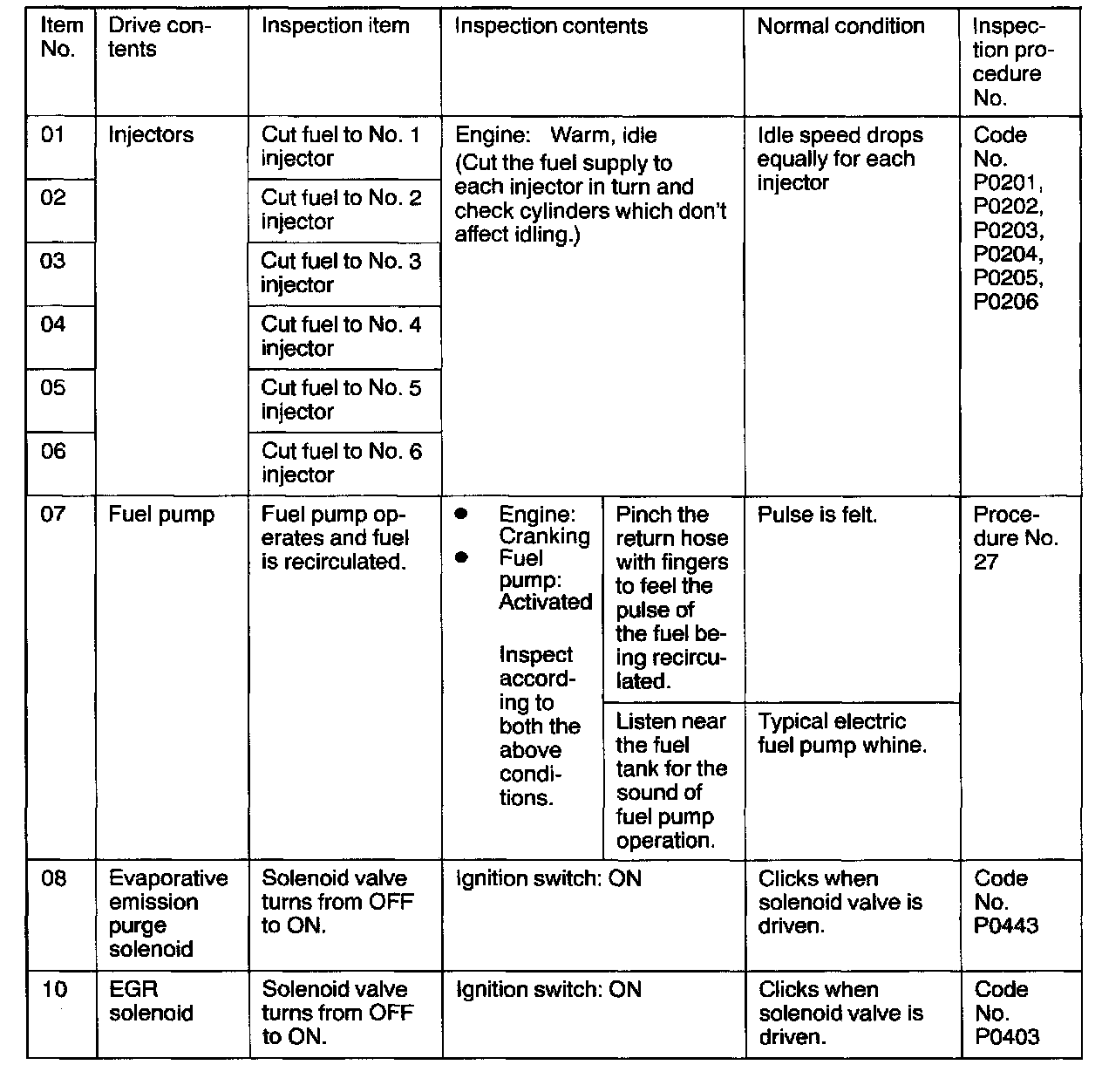 Actuator Test Reference Table Part 2: