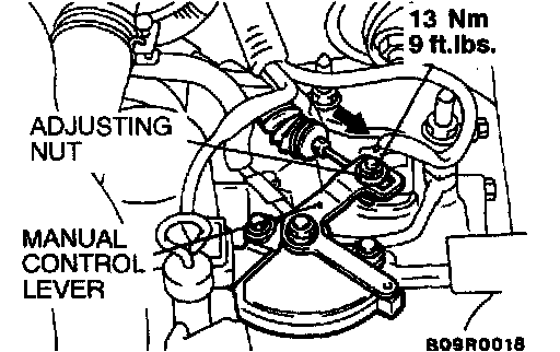 2. Loosen the control cable to manual control lever coupling nut to free the cable and lever.