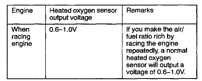 7. While repeatedly racing the engine, measure the heated oxygen sensor output voltage.