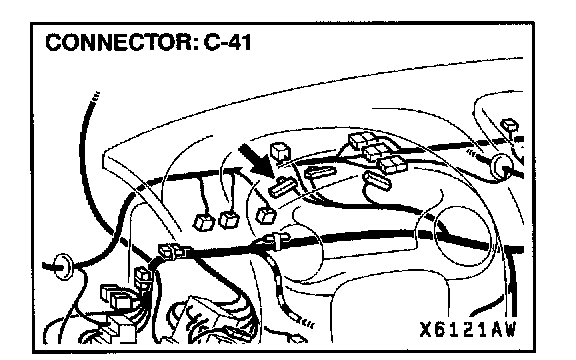 3. Check for continuity between connector C-41 terminal 41 and ground.