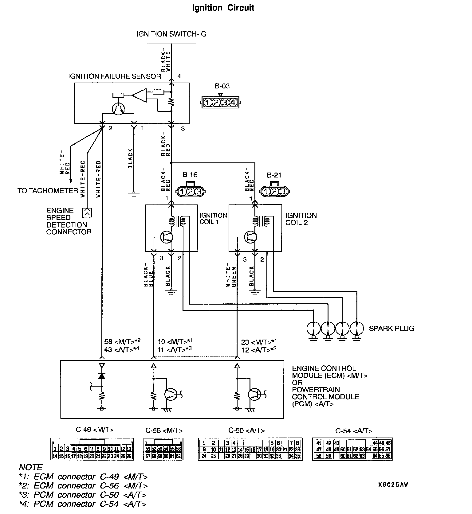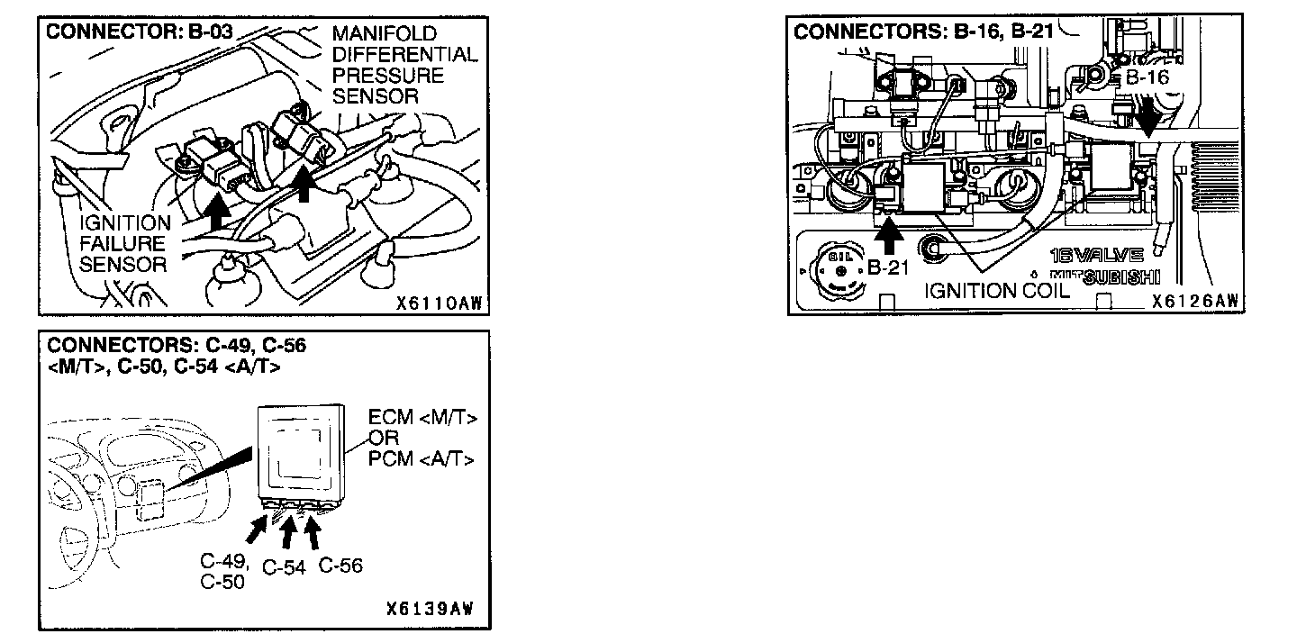 Connectors: B-03, B-16, B-21, C-49, C-55 <M/T>, C-50, C-54 <A/T>: