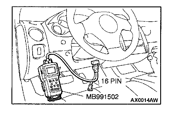 CAUTION: To prevent damage to scan tool MB991502, always turn the ignition switch to "LOCK" (OFF) position before connecting or disconnecting scan tool MB991502.