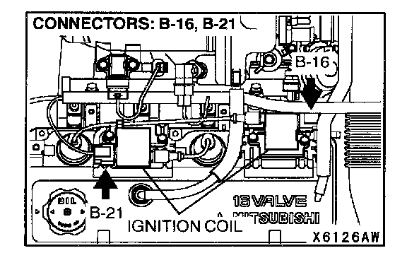STEP 6. Check the circuit at the ignition coil connectors B-16, B-21.