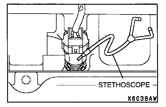 Using a stethoscope or long blade screwdriver, check the operation sound ("tick-tick-tick") of injectors during idling or during cranking.
