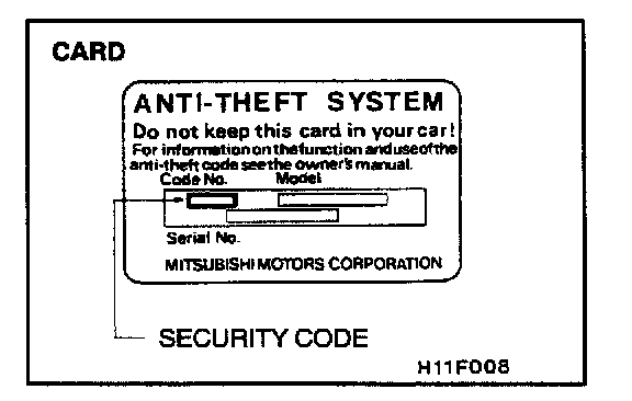 Use the security code on the cards attached to the upper surface of the replacement radio, tape player, CD player and CD auto changer.