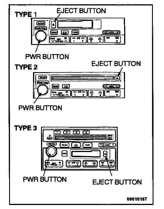 1. Press the "PWR" button and "EJECT" button together to operate the radio, tape player, CD player and CD auto changer.