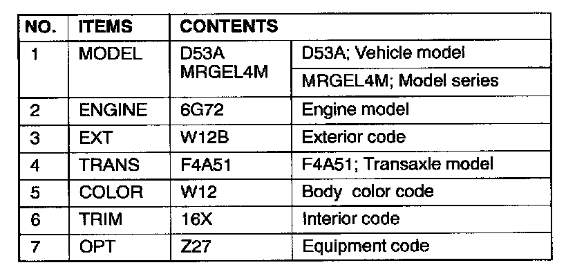 The vehicle information code plate is bonded onto the cowl top outer panel in the engine compartment.